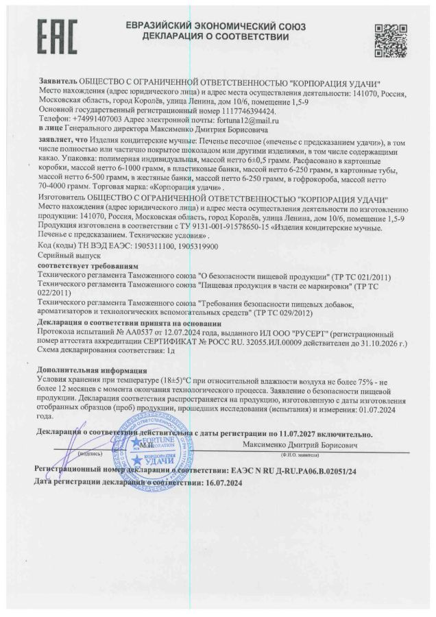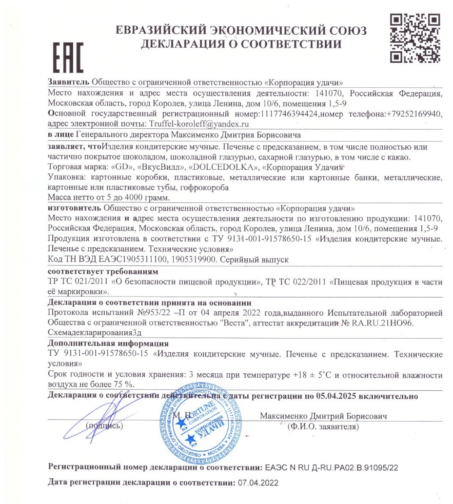 Компания ООО "Корпорация удачи" - производитель печенья с предсказаниями на все случаи жизни. С шоколадом и посыпками. Любой дизайн,цвет и вкус!